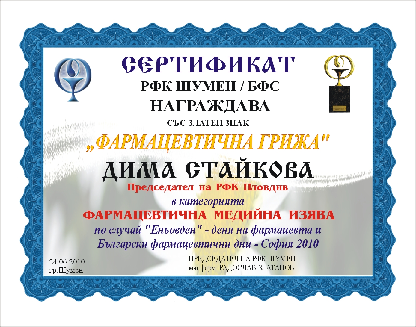 РЕГИОНАЛНА ФАРМАЦЕВТИЧНА КОЛЕГИЯ НА ГОДИНАТА – РФК ПАЗАРДЖИК